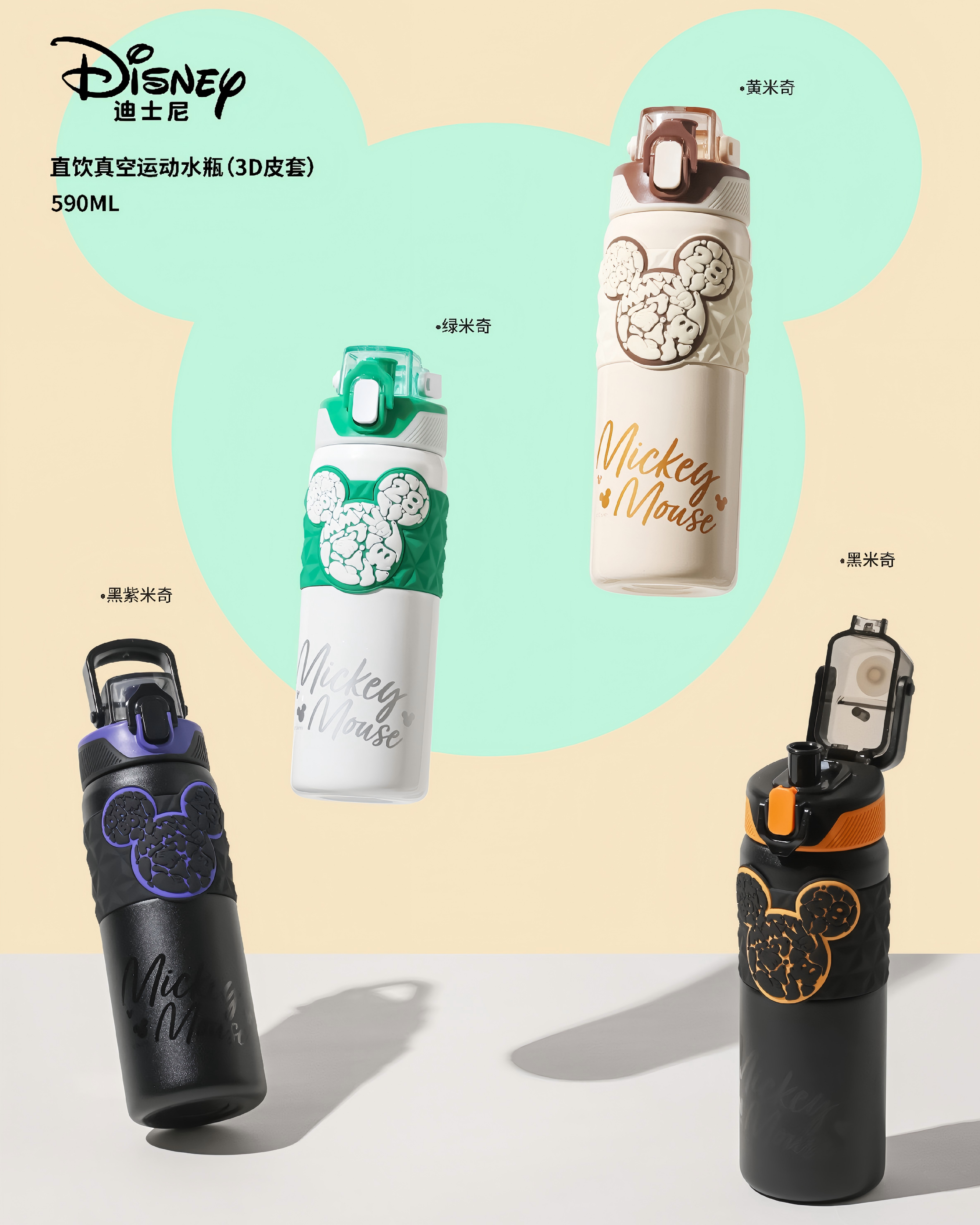 迪士尼直饮真空运动水瓶(3D皮套)
